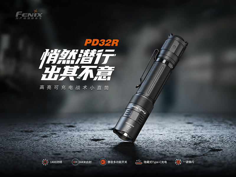 答:Fenix PD32R是集小巧、高亮、戰術性能于一身的高亮可充電戰術小直筒。它的主要亮點在於: