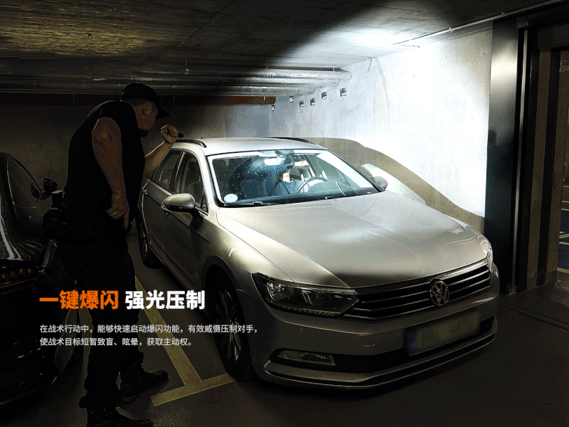 2.多功能尾部開關,一鍵搞定點亮、鎖定和爆閃,使用方便快捷。