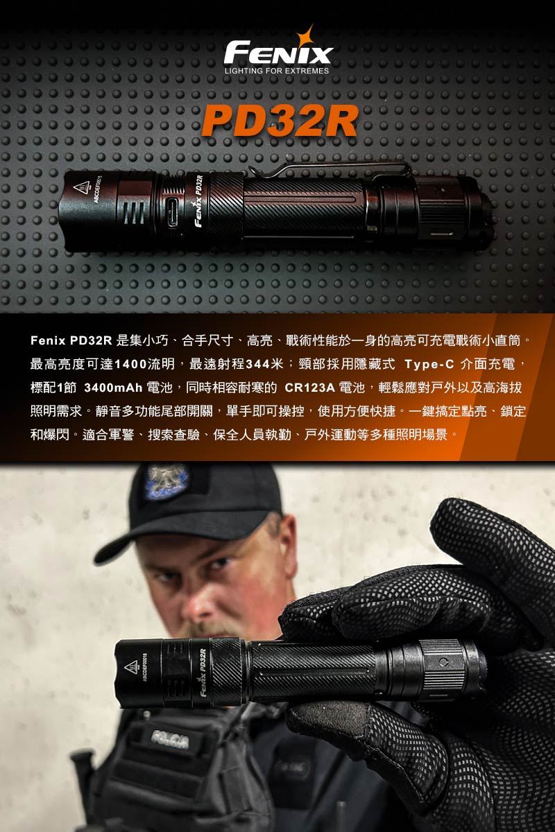 品名:FENIX PD32R 高亮可充電戰術小直筒