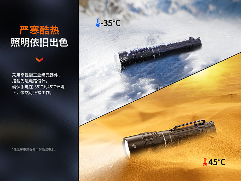 答:PD40R V3.0標配1節Fenix ARB-L21-5000 V2.0電池。Fenix ARB-L21-5000不相容PD40R V3.0,因為ARB-L21-5000過流保護值最低為14A,PD40R V3.0最大工作電流會超過14A,容易啟動電池保護機制導致手電筒熄滅。四、PD40R V3.0的色溫是多少?