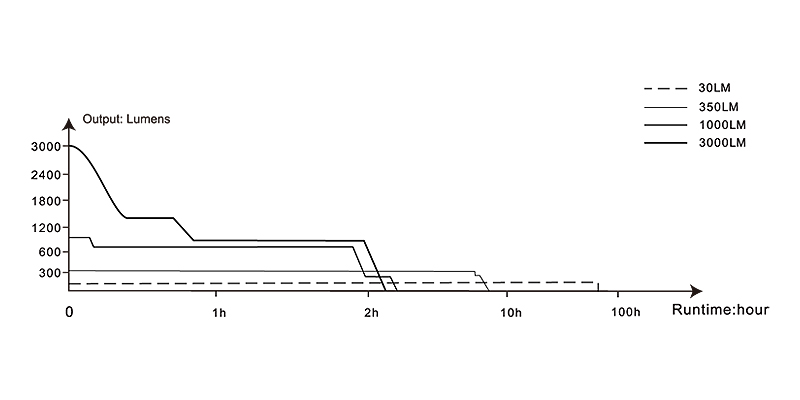 答:PD40R V3.0的極亮檔續航時間為2小時40分,但是在3000流明的極亮檔工作時,手電筒會急劇產生熱量,當熱量達到一定程度時手電筒會主動降低當前亮度來平衡溫度,所以該續航時間是PD40R V3.0在智慧保護狀態下的累計時間,是根據ANSI / PLATO FL1標準在21±3℃的實驗室環境下自然放電測試所得的真實資料。(具體續航表現可查看說明書續航曲線表)