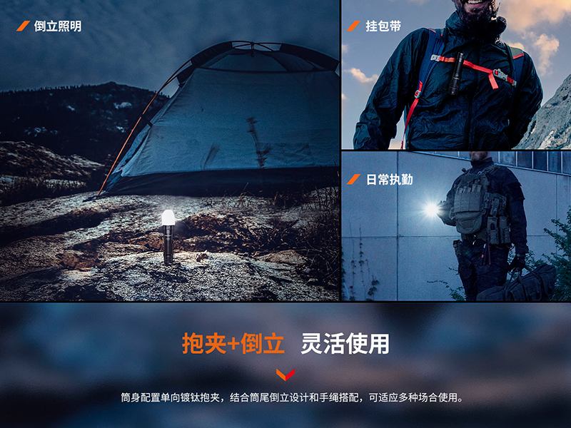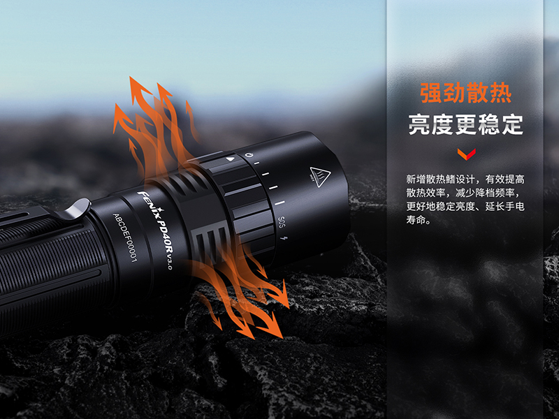 3.尾部平整,可倒立使用,同時配備抱夾,可適應多種場景需求二、PD40R V3.0使用LED是什麼型號?Fenix是否能幫我更換LED?
