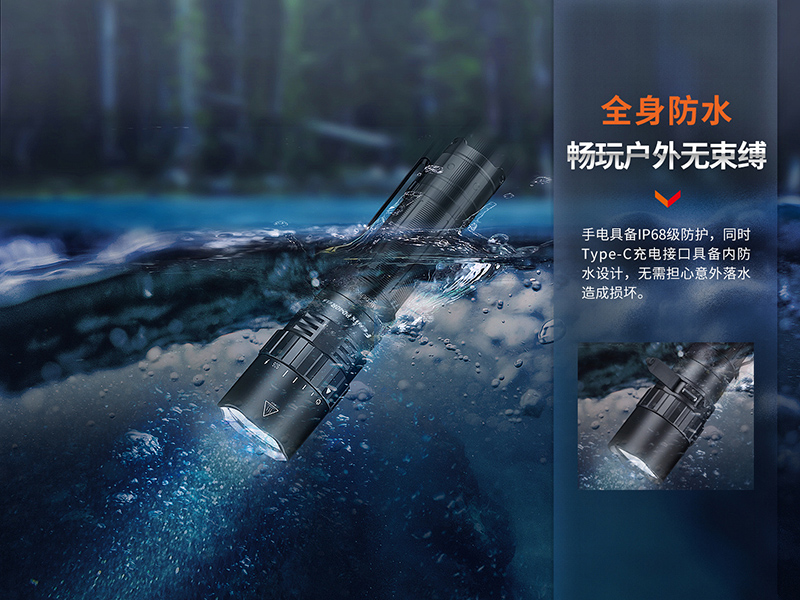 答:可以,PD40R V3.0帶有Type-C充電介面,且採用內防水設計,無需擔心戶外落水等情況;PD40R V3.0從電量基本耗盡到完全充滿,耗時約3小時(需适配器支持5V/2A及以上)。八、PD40R V3.0如何避免誤觸點亮?